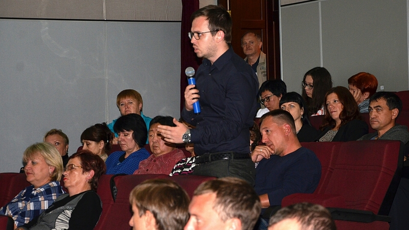 В зале кинотеатра «Россия» собралось около сотни местных жителей. Актуальность данной тематике придало недавнее объявление губернатором нового курса в экономической политике региона. Областные власти инвестируют миллиарды бюджетных рублей в сельскохозяйственную и туристическую отрасли островов с целью снижения зависимости бюджета от нефтегазового сектора. Отдача, по мнению исполняющего обязанности министра экономического развития региона Сергея Карпенко, уже чувствуется. В области растет выработка мясной продукции, увеличиваются надои молока, все больше любителей путешествий интересуются островной природой и возможностями горнолыжного курорта «Горный воздух».