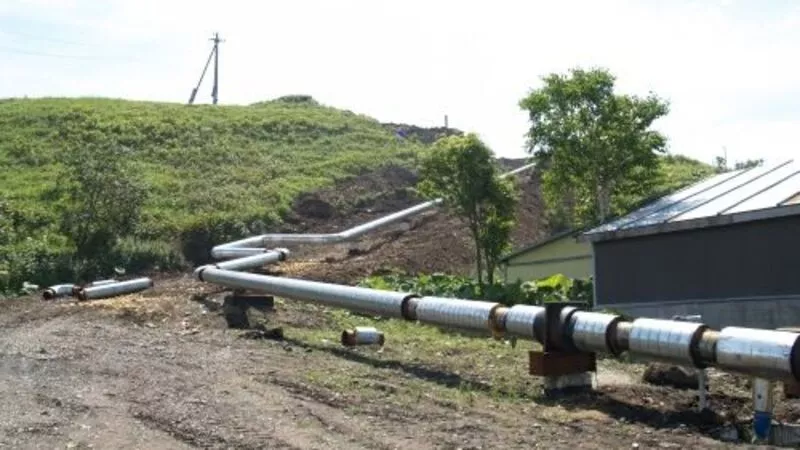 Вообще на бумаге проект геотермального комплекса выглядит просто. Его мне показал первый заместитель дирекции ФЦП «Курилы» Валерий Сордонов. Вот площадка Менделеевской ГеоТЭС. Вот от нее ломаной линией тянется трубопровод. На станции в поселке термальная вода проходит через теплообменники и нагревает воду в системе теплоснабжения поселка. Но это кажущаяся простота, которая очень тщательно продумана и просчитана, с максимальным учетом всех природных и технических факторов, с внедрением технических изюминок. И неоднократно проектные решения улучшались даже по ходу строительства.