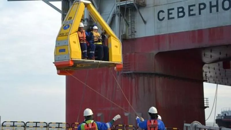 Компании «Газпром» эта махина (как и стоящая рядом «Полярная звезда») обошлась в 1 млрд долларов США. Ее высота составляет 128 метров, верхняя палуба в длину имеет 85 м, а в ширину – 73 м. Попасть на нее возможно только с помощью вертолета либо «лягушки» – так называется приспособление, напоминающее аттракционную люльку, которую цепляют краном и поднимают на палубу платформы. То же самое действо происходит во время возвращения. Только вместо подъема «лягушку», вмещающую шесть человек, опускают на корму ожидающего на воде судна.
