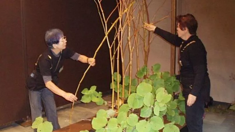 В этом году фестиваль «Цветы России» сменил место действия: «ландшафтный дизайн», как уже упоминала, расположился на территории Чехов-центра, а работы флористов и мастеров икебаны можно увидеть в художественном музее и областной библиотеке. Торжественное открытие выставок состоялось 25 сентября. Но нам, журналистам, посчастливилось приобщиться к рабочему процессу и поговорить с мастерами искусства составления цветочных букетов и композиций. Тамара Бросалина профессионал-ландшафтник. Фирма «Рубин», где она работает, занимается озеленением Южно-Сахалинска. Но есть у нее и собственные «ландшафтные произведения». Жители областного центра, конечно же, не оставили без внимания оформление территории вокруг колеса обозрения в парке им. Гагарина – это ее работа. Икебана для Тамары – увлечение. «Я не профессионал, я только учусь», – говорит Тамара Анатольевна. Но, на мой взгляд, ученица она хорошая.