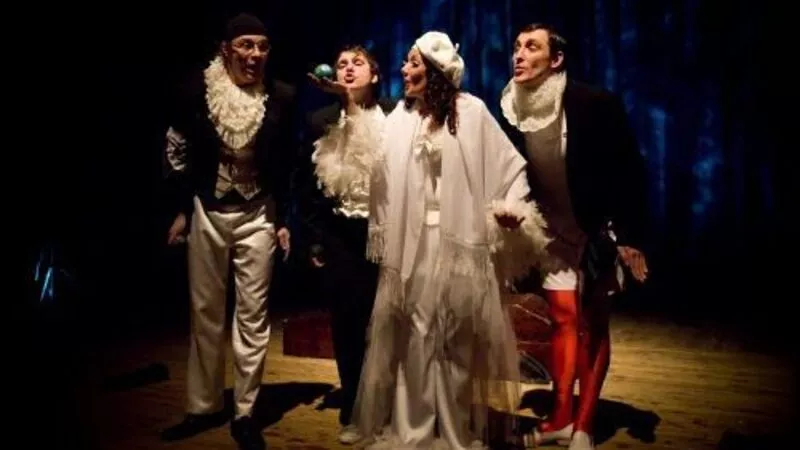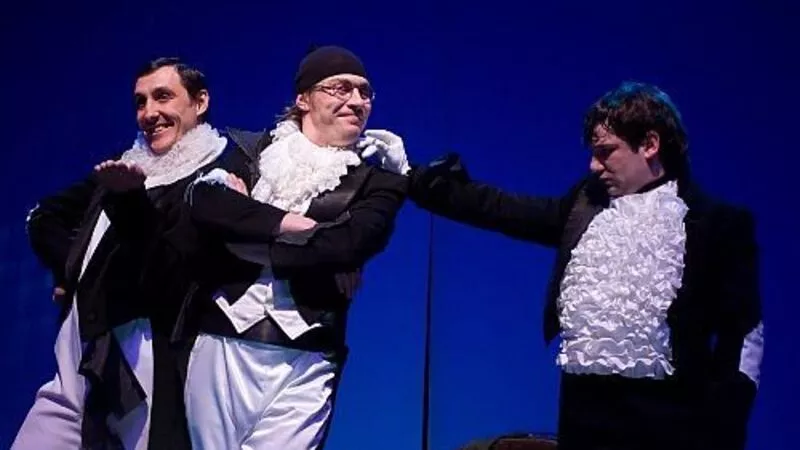 Так что история о трех пингвинах (Роман Татарчук, Леонид Всеволодский и Василий Бабаев), переживших Всемирный потоп, и о Голубке – администраторе библейского Ковчега (Ксения Кочуева) получилась увлекательной и достаточно цельной. Чтобы не потерять эту самую цельность, не растворить своих героев в просторном ведре большой сценической площадки, режиссер воспользовался приемом малой сцены. На квадрате сцены за театральным занавесом расположились и зрительские ряды, и игровое пространство. А поскольку детишкам, как правило, не приходится бывать в театральном закулисье, на них большое впечатление производили зависающие над головами софиты, делая мир театральной сказки чуть более волшебным.