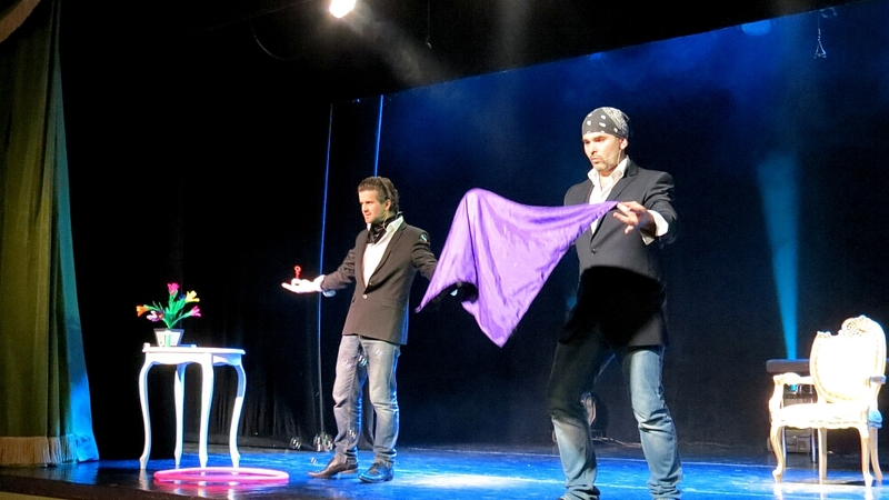 На первой ступени «канительного» пьедестала расположился творческий эксперимент «Имаджинариум доктора Абсурдо» от артистов театра кукол Игоря Двуреченского и Евгения Панихина. Тем и хорош конкурс, что для актерской самостоятельности рамок не существует. Ну когда бы еще фокусники-лицедеи могли превратить огонь в букет, переселиться в чужое тело или заставить своего коллегу Дмитрия Добролюбова уверовать, что он индийский йог и Дэвид Копперфильд в одном лице?