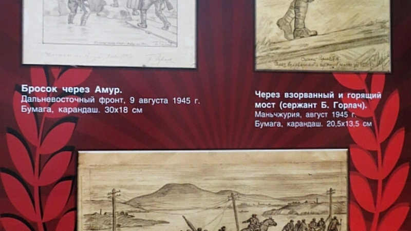 Коллекция графики члена Союза художников России Бориса Горлача объединена в нескольо серий: «Воины-амурцы», «Теряли друзей боевых», «Приказ Родины выполнили», «Все преодолели», «В Маньчжурии русский солдат», «Радость Победы».