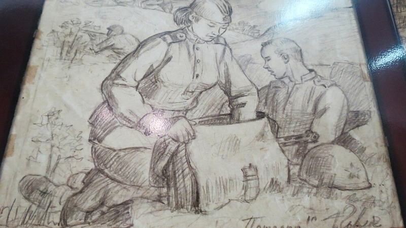 – Это наш совместный проект с амурским музеем из города Благовещенска, посвященный 72-й годовщине окончания Второй мировой войны, – говорит Виталий Тян, специалист по экспозиционно-выставочной деятельности островного музея. – Художник во время военной операции советских войск в Китае был минометчиком. Участвуя в боевых действиях, в минуты передышки он, как профессиональный живописец и скульптор, делал фронтовые зарисовки. Рисовал карандашом, используя все, что было под рукой, и чаще всего трофейную японскую бумагу.