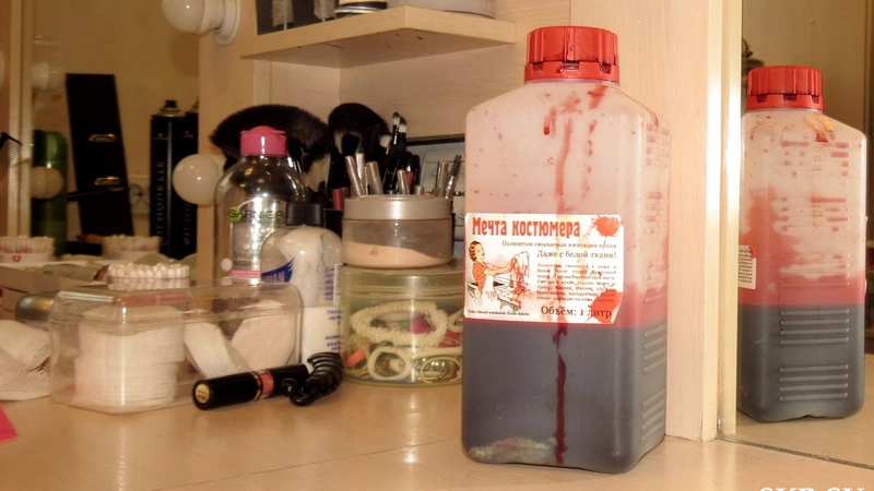 Поскольку на сцене нельзя обойтись без крови, то с незапамятных времен для ее имитации используется жидкость. Делают ее на основе соков. Все бы ничего, но из-за этого шла незатихающая «война» костюмеров с гримерами: следы бутафорской крови потом не отстирывались. Но теперь появился инновационный материал, который от крови не отличишь, но отстирывается легко. Его даже назвали «Мечта костюмера». И свое название «Мечта» оправдала.