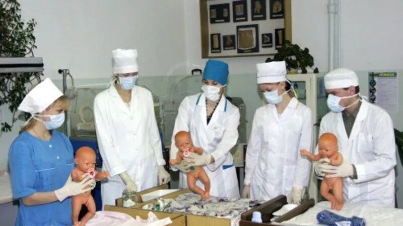 На втором этаже, помимо административных помещений и методического кабинета, находится кабинет акушерства. Заглянем-ка. Здесь есть все, чтобы принять новорожденного: фантомы, инструменты, специальный стол и даже детские кроватки. Сами «новорожденные» полностью имитируют младенцев. Разве что молчат. Но это не мешает студентам овладеть сложной и древней наукой, призванной помочь человеку войти в этот мир живым и здоровым. Акушерство, пожалуй, одно из самых ответственных направлений в медицине. Поэтому студенты внимательно слушают объяснения преподавателя. Ведь после изучения теории им предстоит практика в родильном доме.