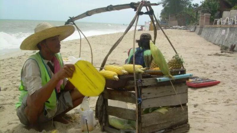 В Сиаме лучше забыть о диете, все равно выдержать ее не получиться. Тай – это сплошной праздник живота, раздолье для гурманов. Часам к шести вечера в рестораны и бары привозят свежайшую рыбу и морепродукты и выставляют их возле входа в небольшой лодочке. Подходишь, капризно тыкаешь пальцем в понравившийся тебе продукт, и вскоре его приносят тебе на блюде. Вкус отменный. Что у креветок, что у кальмаров, а рыбу в собственном соку готовят вообще превосходно. Обходился нам такой рыбный ужин примерно в 500-600 бат на троих.