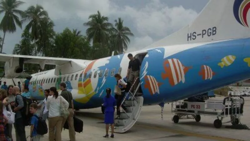 На остров Самуи, о существовании которого я пару месяцев назад даже не подозревала (как все-таки расширяют географические познания турфирмы!), лететь чуть больше часа. С этой задачей успешно справился небольшой самолет, разрисованный в пляжном стиле: разноцветные рыбки, водоросли, голубые волны… Туристов с первых минут настраивают на приятных отдых. Прямо у трапа мы пересели на симпатичные автобусики. Они тоже украшены экзотическими рисунками – птички, пальмы, бабочки. Автобусики открытые, а на случай дождя предусмотрены опускающиеся окна.