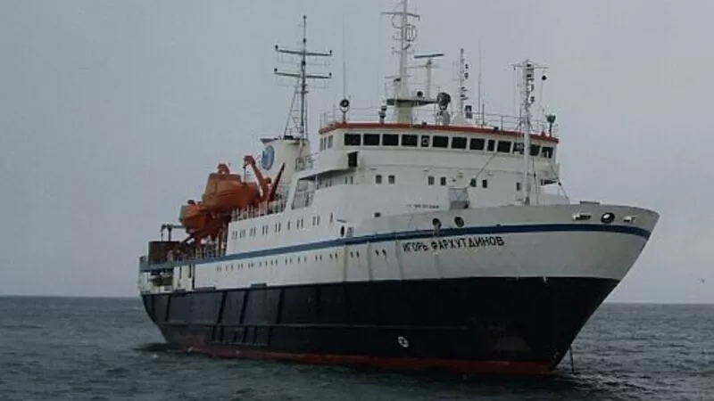 В Корсаков мы с коллегой из пресс-центра областной Думы Сергеем Лукьяновым прибыли в назначенное время. У причала слегка покачивался теплоход «Игорь Фархутдинов», мы погрузились, но только в сумерках, под щемящий душу «Марш славянки», отчалили от сахалинского берега, и направились из залива Анивы на юго-восток.