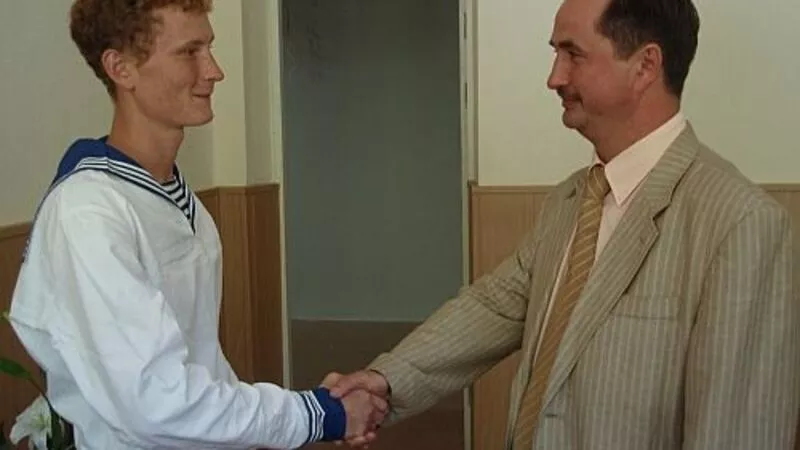 Заглянули мы и в приемную комиссию, где в этот момент оказался вчерашний абитуриент, а теперь уже курсант невельской мореходки Игорь Кузьмин. Кстати заметить, «теперь» – вовсе не оговорка. В Сахалинский морской колледж зачисляют по конкурсу аттестатов, результатам собеседования и тестирования, так что иной из приезжих ребят, как говорится, и оглянуться не успеет, а уже примеряет морскую форму. Что касается Игоря, то у него выбор учебного заведения, как выяснилось, был и осознанным, и закономерным.
