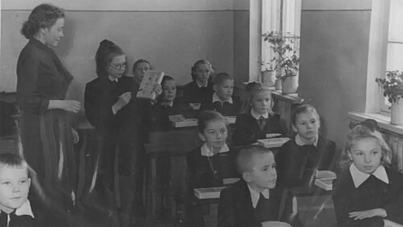 • После освобождения Южного Сахалина от японцев в ноябре 1945 г. на острове открылись первые русские школы – три начальные и одна средняя с интернатом на 250 мест в г. Тойохара (с 1946 г. – Южно-Сахалинск). Еще одна начальная школа начала работать в Конуме (Новоалександровск). Детей учили демобилизованные воины.