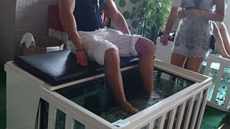 Возле крупнейшего торгового центра – «Central Festival Pattaya Beach» прямо на улице стоят в рядок необычные аквариумы. Они для желающих сделать пилинг ног экстравагантным способом – с помощью мелких рыбешек гарра-руф, которые за считанные секунды отгрызают заусеницы и все лишнее от стопы. Терпеливые любители фиш-пилинга, среди которых не только женщины, но и много мужчин, безропотно сидят минут по тридцать, опустив в воду ноги почти до колен и предоставив их на растерзание юрким рыбешкам. Зато каков результат экзотического сеанса релаксации! Вытащенные из воды гладко отшлифованные пятки одного из эстетов просто сверкали на солнце.