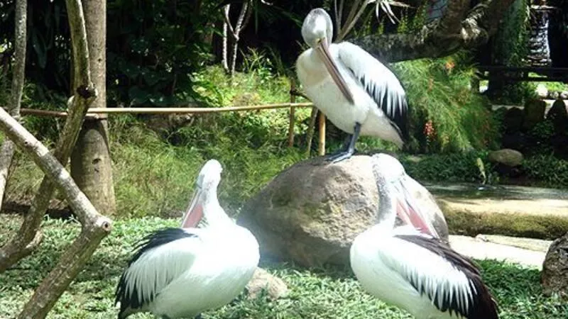 Повсюду порхают, сидят на ветках и прыгают между деревьями балийские скворцы, южноамериканские макао, австралийские какаду... В заросших лотосом прудах важно ходят африканские журавли, танзанийские фламинго, плавают пеликаны и лебеди. Всех обитателей птичьего парка перечислить невозможно, а о некоторых мы даже и не знали. К примеру, Южную Америку представляли туканы. Длина клюва у них почти равна длине туловища, а оперение настолько яркое, что невозможно пройти мимо. В зелени деревьев туканов легко можно принять за яркий тропический цветок или бабочку.