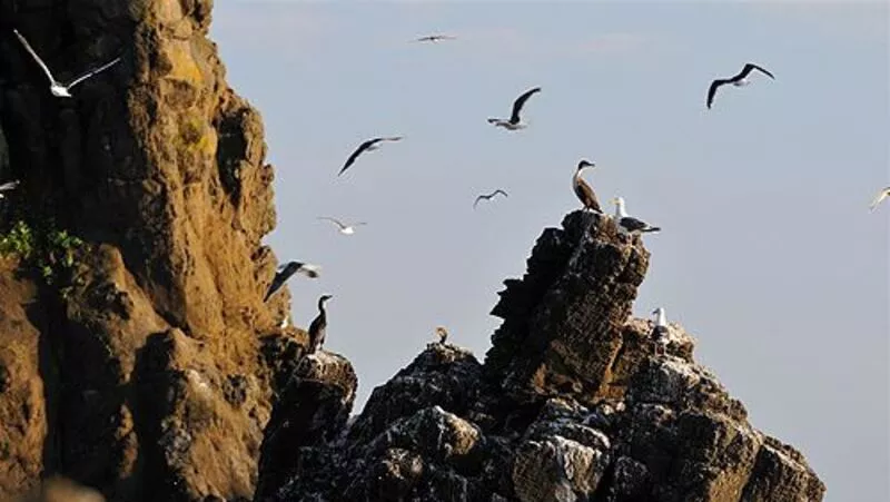 Здесь же находится небольшой скалистый островок – кекур, который дети прозвали Дракончиком. Его горные породы также магматического происхождения, но не излившиеся, а глубинные, по составу они похожи на темный мрамор. На островке расположилась колония чернохвостой чайки. Это также излюбленное место гнездования японского баклана, занесенного в Красную книгу. Часто в этом месте можно увидеть белоплечих орланов, они кружат над скалами, внося дивный колорит в восприятие местности. В мае на прибрежных камнях мыса Стукамбис останавливаются морские обитатели - сивучи.
