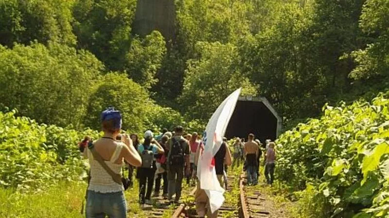 – Поход по старой железной дороге в Холмском районе стал завершающей частью нашего путешествия, но для меня она была одной из самых интересных. Железная дорога Южно-Сахалинск – Холмск построена через горы огромнейшими усилиями корейских работников, насильно привезенных на Сахалин японцами. Сейчас о ней напоминают лишь следы шпал да огромная каменная насыпь. Дальше тоннели, тоннели и еще раз тоннели. Их много. Среди них есть весьма длинные и интересные. Встречаются на «железке» артефакты – рельсы с дарственными надписями Японии от Великобритании.