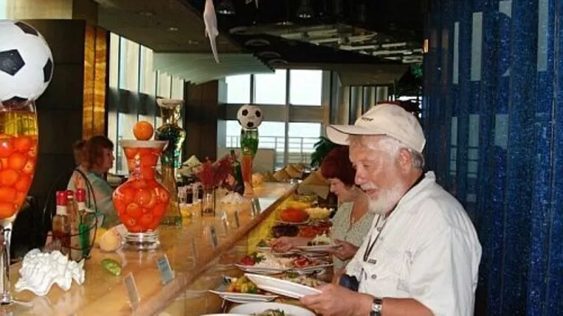 В стоимость наших путевок входил только завтрак. Довольно скромный шведский стол, а выбор блюд вполне достаточный. Меня всегда тянуло на экзотику – облюбовал пикантную пасту из клубники, чеснока и еще чего-то непонятного. Обратил внимание и на такую деталь – под некоторыми посудинами с закусками постоянно горел огонь. Разогретая пища лучше усваивается.