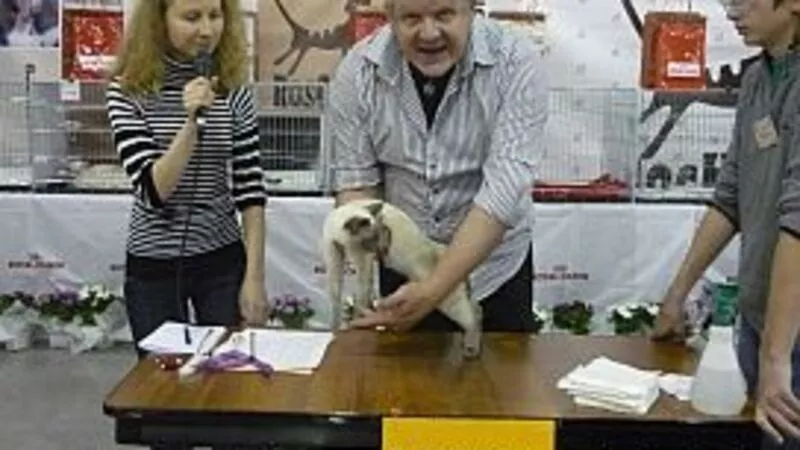 Конечно, сразу ринулась искать наших дорогих тайцев. Крылья любви не подвели и дали точный ориентир: лавируя между плотными рядами палаток всех цветов радуги, буквально в считанные секунды нашла дружную компанию тайцевладельцев. И вовремя – через 20 минут начиналась экспертиза у итальянского судьи Массимо Пикарделло. Наши тайцы выставлялись по системе WCF. Всего на «Содружестве» были представлены шесть систем – WCF, FIFE, ICU, CFA, TICA и МФА. Судейский состав был из разных стран – России, Бельгии, Германии, Италии, США. И, конечно, одним из самых больших желаний кошатницы с Сахалина было воочию увидеть звезд мировой фелинологии. Массимо Пикарделло – эксперт с 20-летним стажем по всем породам. В жизни Массимо – профессор университета и еще известный в Италии художник. Взгляд живописца, по мнению его коллег-судей и многих заводчиков, способствует Пикарделло фантастически умело разбираться в сложных окрасах. И хотя я всего лишь любитель, но с большим трепетом наблюдала за работой итальянца: по его жестам, выразительной мимике и глазам можно было понять, какое впечатление производит экспонент. Плюс набралась наглости и заглядывала в оценочные листы, закрепляя свои знания стандарта тайской породы. И очень благодарна профессору, позволившему проявить мне излишнее любопытство. Первая цель была достигнута – перед моими глазами прошли 30 тайских кошек.