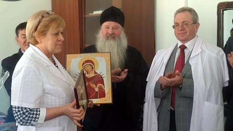 Владыка подарил главному врачу учреждения Марии Старостиной (на снимке) икону Божьей Матери Семистрельной и пожелал терпения. Верующие молятся перед ее образом о примирении враждующих и избавлении от жестокосердия.