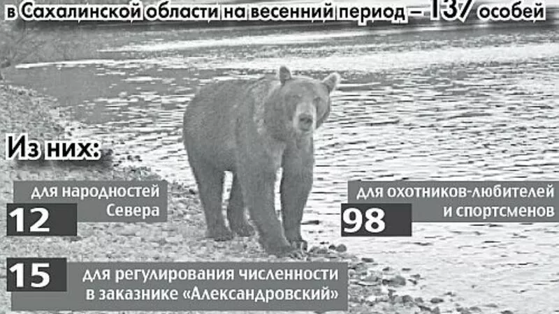 Совсем скоро, 20 апреля, на юге Сахалина начнется охота на бурого медведя. Продлится она до 20 мая. На севере острова сроки охоты более длинные – с 1 мая по 30 июня. Лимит нынешнего года – 137 особей.