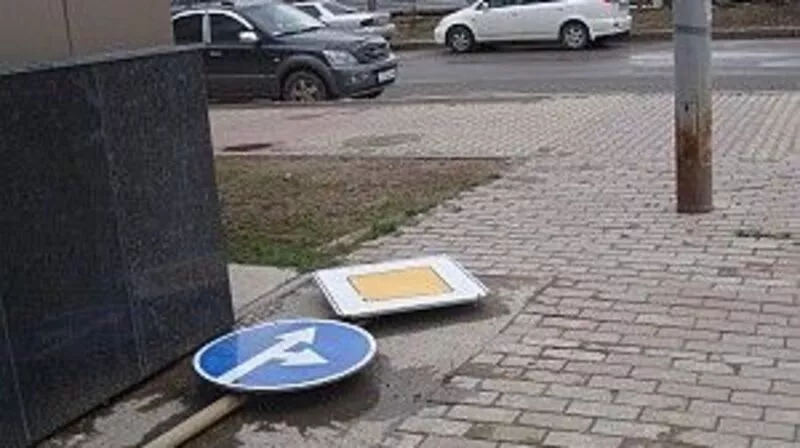 В таком противоестественном для себя положении к моменту публикации стойка со знаками находилась больше недели. Это при том, что обстановка на перекрестке возле нашей редакции непростая – движение интенсивное, обзорность неважная, светофоров нет, а ДТП случаются нередко (их мы видим со своих рабочих мест).