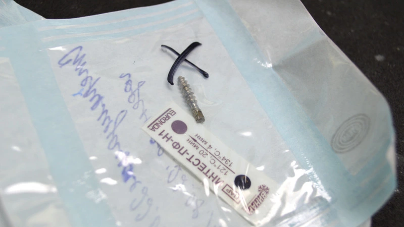 Хирург показал имплантат, который пришлось удалить из воспаленного рта пациента. Врач специально сохранил этот образец как науку тем, кто собирается ехать за зубами в Китай. В пакетике лежал обычный саморез, универсальный шуруп, который используют при сборке мебели, оконных модулей да много чего еще, но только не в стоматологии. Несчастная обладательница вживленного штыря с резьбой обратилась в клинику с жалобами на гноетечение и подвижность зуба.