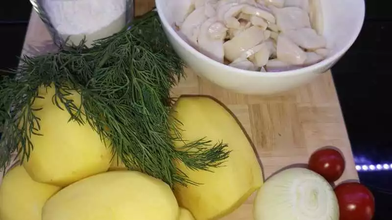 Для этого отвариваем картофель, когда он будет готов, сливаем воду, но часть жидкости оставьте в чашке (она понадобится позже). Отварной картофель нужно измельчить до состояния пюре и добавить муку. Осторожно (без применения особой силы) перемешайте ингредиенты. Это необычное тесто и станет основой нашего блюда.