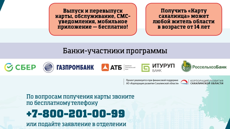 Для оформления карты достаточно просто обратиться в офис банка-партнёра, сегодня это Сбер, Газпромбанк, АТБ, Итуруп и Россельхозбанк.