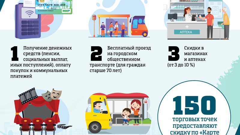 «Карта сахалинца» даёт право на получение денежных средств, как собственных, так и соцвыплат, бесплатный проезд в общественном транспорте, скидки в магазинах и аптеках, посещение объектов культуры и спорта, вход в учебные заведения для школьников.