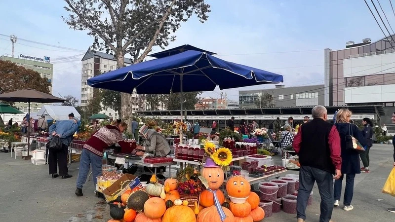 Два дня — 1 и 2 октября — в Южно-Сахалинске на территории у Дома Торговли работала традиционная ярмарка. На «Золотую осень Сахалина-2022» свою продукцию представили более 200 сельхозпроизводителей.