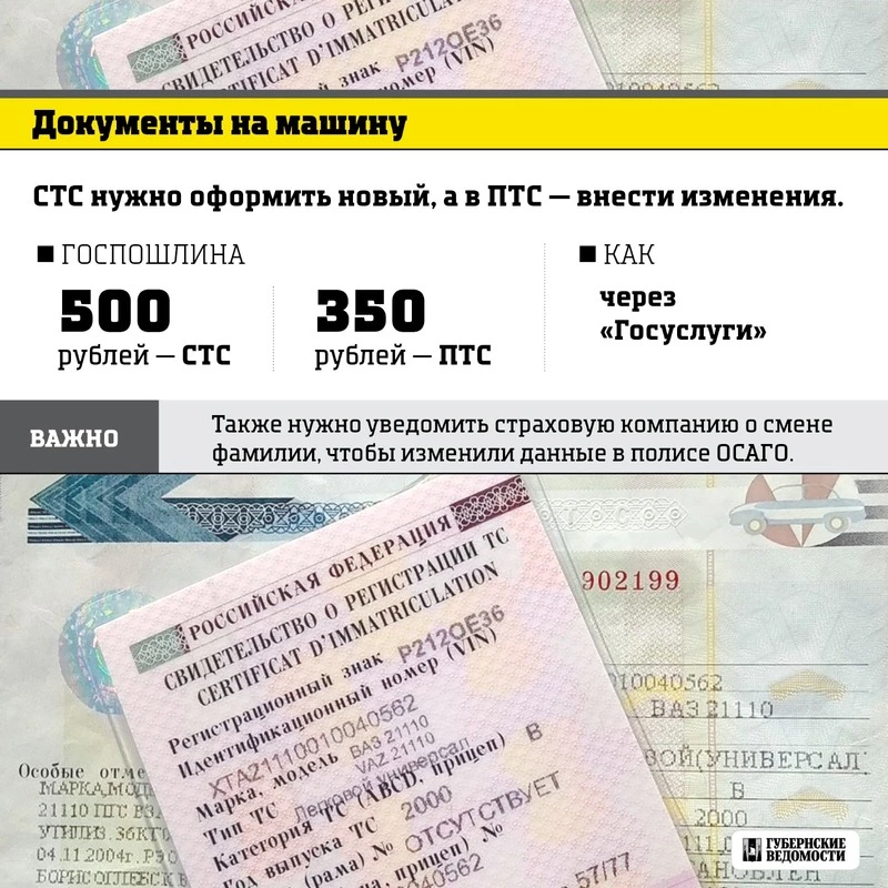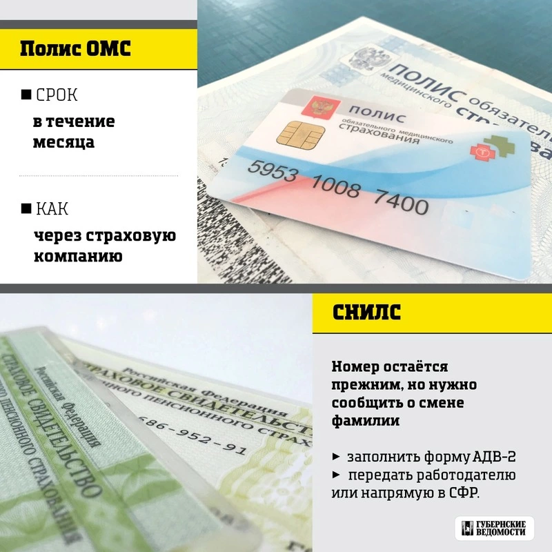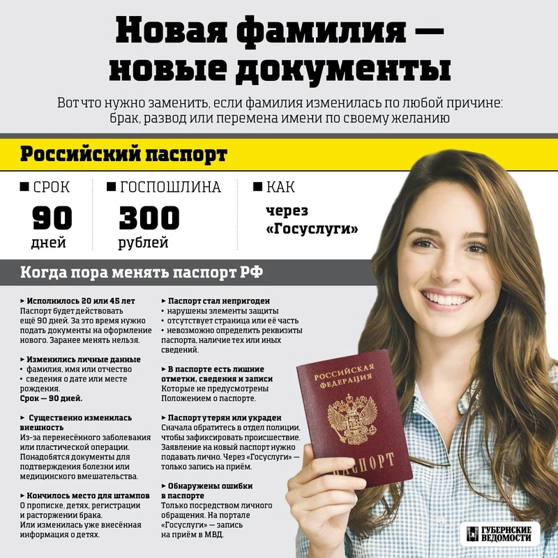 Вот что нужно заменить, если фамилия изменилась по любой причине: брак, развод или перемена имени по своему желанию. (Источник: Телеграм-канал «Госуслуги»)