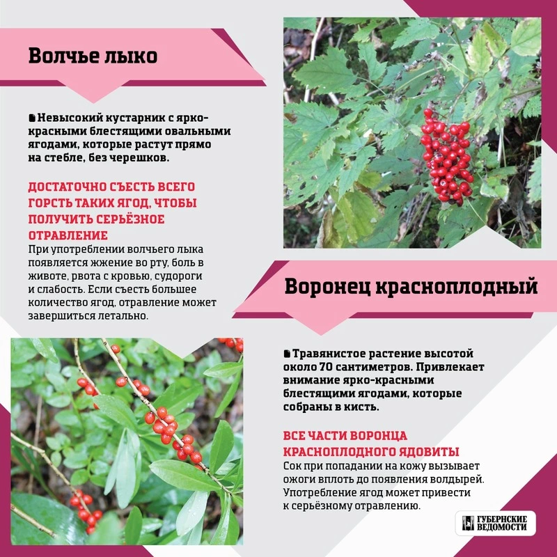 Яркие красивые плоды привлекают внимание. Однако, употребление таких ягод вызывает серьёзное отравление, и может привести даже к летальному исходу