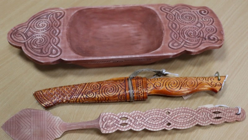 — Резьбу по дереву осваивал самостоятельно, просто не у кого было учиться. Национальные орнаменты подсматривал у бабушек. Тогда ещё были женщины, которые знали и умели делать эти украшения. Правда, никто уже не понимал их предназначения. А ведь по орнаменту можно было, например, прочитать родословную нивхов. Все они имели своё значение, — рассказал Фёдор Сергеевич.