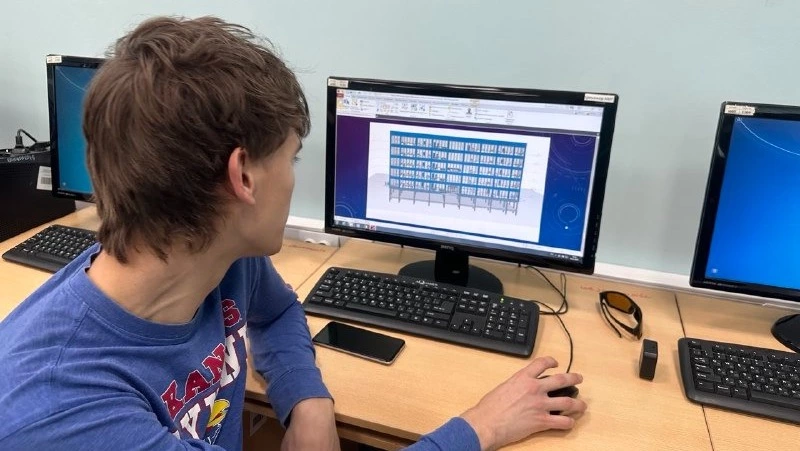 «Мы сразу разделили общий объем работ — площадь 50 тысяч квадратных метров — по разным направлениям — я занимался ЗД-визуализацией проекта и отрисовкой планировок, девушки на курсе компоновали этажи и „расставляли“ мебель», — пояснил студент 4 курса по направлению «промышленное гражданское строительство» Марк Степанов.