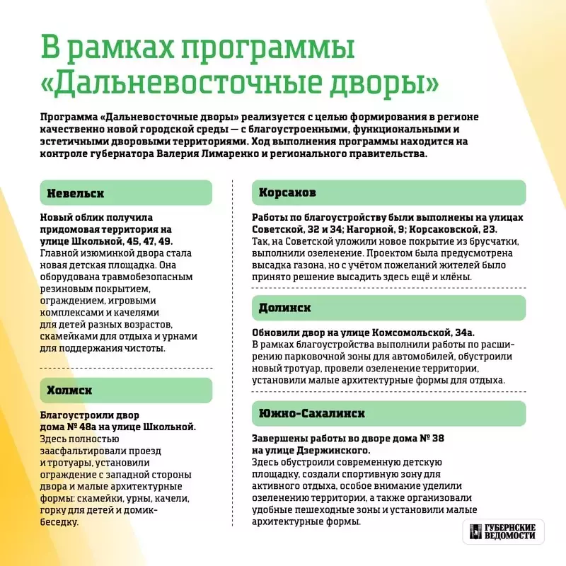 Что было сделано во дворах Сахалинской области в 2025 году — карточки