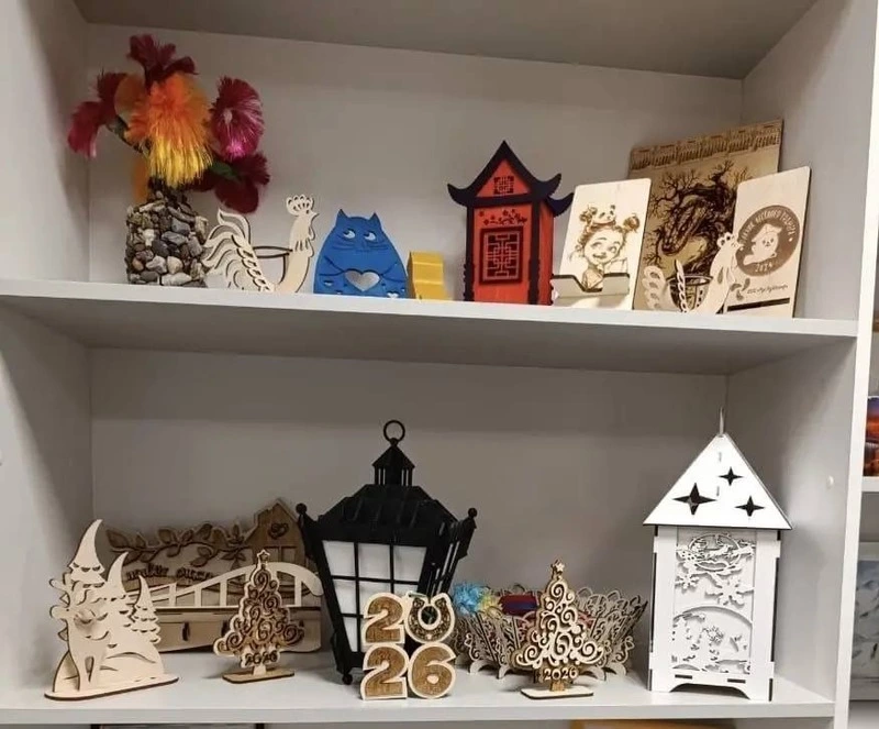 В преддверии Нового года подопечные корсаковского центра заняты изготовлением подарков. Это изделия из дерева, фанеры, картона, тканей, которые украсят дома сахалинцев. За изготовлением игрушек, узорных панно, настенных часов, сказочных домиков и других подарков следит наставник центра Александр Кондратенко. Он обучает людей с инвалидностью работать на 3D-принтере, лазерном резаке по дереву и другом оборудовании. Все, что делают его ученики, раздается на мероприятиях, обменивается, дарится людям.