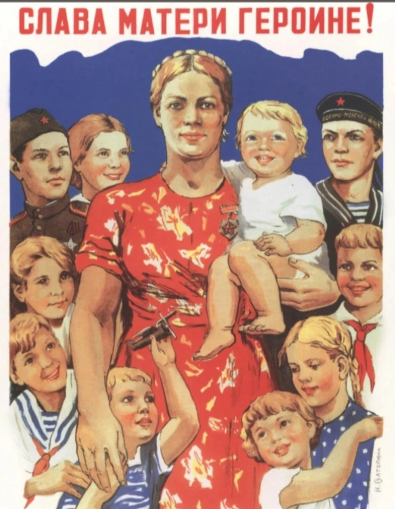 Акцент сместился еще в 1930–1950 годах. Советская власть закрепляет образ женщины как матери и хранительницы очага, параллельно призывает работать на производстве. Постепенно 8 марта начинают подчеркивать «выдающиеся заслуги советских женщин», то есть в первую очередь героинь труда, матерей‑героинь.