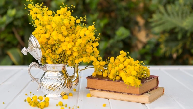 Желтый цвет мимозы идеально подойдет для радостного, солнечного настроения. Их весенний оттенок ассоциируется с пробуждением природы, приливом энергии. Пушистые шарики особенно ассоциируются с 8 Марта. Это универсальный вариант, который подойдет как для коллеги, так и для любимой женщины.