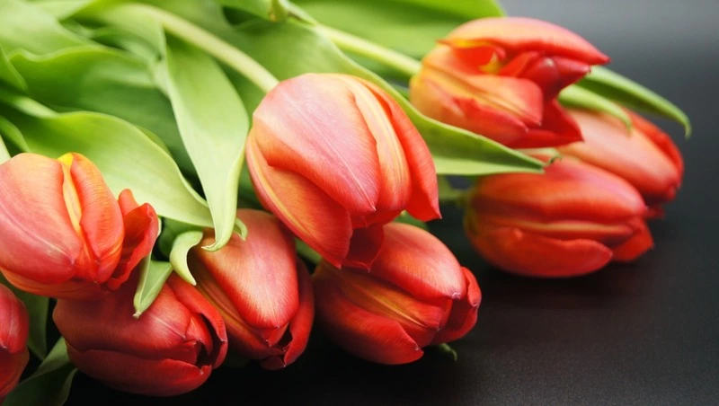 Красный цвет также подойдет для букета на 8 Марта. Здесь важно сочетание цвета и самого растения. Например, красные розы дарим девушкам и женам, а красные тюльпаны оставим для коллег и хороших знакомых, которых хочется порадовать.