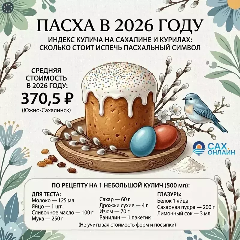 В 2026 году индекс кулича в Южно-Сахалинске зафиксирован на уровне 350-370 рублей за домашнюю выпечку. Самый доступный набор ингредиентов можно найти в «Верном». Самый приятный шопинг с выбором форм и декором — в «Первом семейном». А если хочется суеты с салфетками — добро пожаловать в «Столичный».