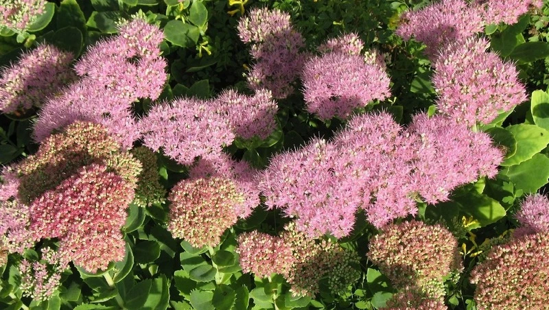 В конце лета, когда сад устал, очиток выпускает плоские зонтики розового, малинового или белого цвета, на которых сидят бабочки и пчелы. Его мясистые листья накапливают влагу, поэтому поливать его не нужно вовсе.