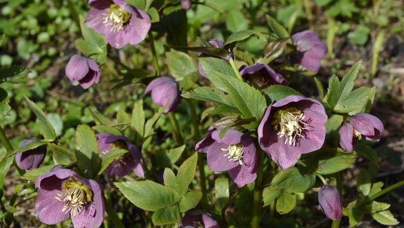 Самое шикарное растение в списке. Его крупные чашевидные цветы распускаются… в апреле, когда еще лежит снег. Лепестки держатся 2-3 месяца, а вечнозеленые листья украшают цветник круглый год.