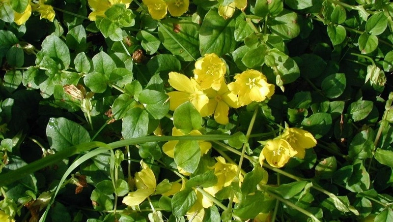Не путать с солидаго (золотарником), который является агрессором. Вербейник — стелющееся растение с круглыми листьями, похожими на монетки. Он создает золотистый ковер, который выдерживает вытаптывание.