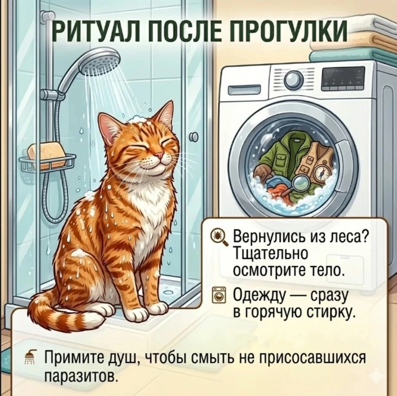Пришли домой — сразу в душ, а вещи в стирку. Оставайтесь в безопасности до самого конца сезона.