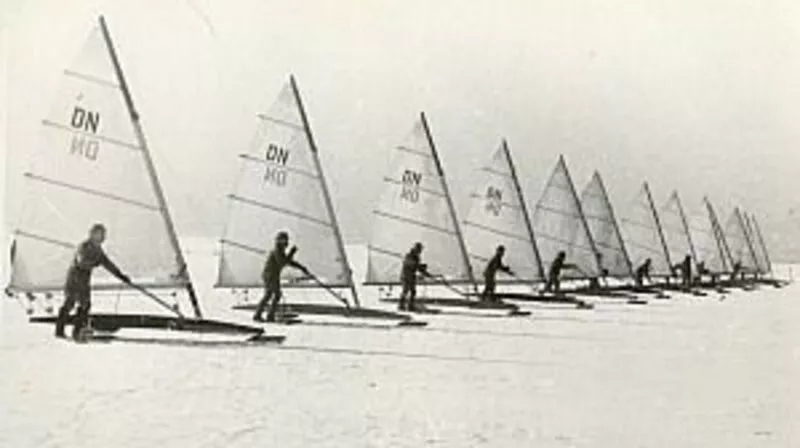 – У нас в Холмске море не замерзает, – объясняет Михаил Смоляков, – приходится ездить в Корсаковский район. Там Анивский залив к середине зимы покрывается прекрасным льдом. Главное в этом деле, чтобы его поверхность была чистой, без снега. На буерах мы и тренируемся, и проводим настоящие соревнования, как летом, с раздачей грамот и кубков. На этой старой фотографии самый первый спортсмен – это я. Фото было сделано лет двадцать назад на льду в том же Анивском заливе. С тех пор принцип использования буеров не поменялся.