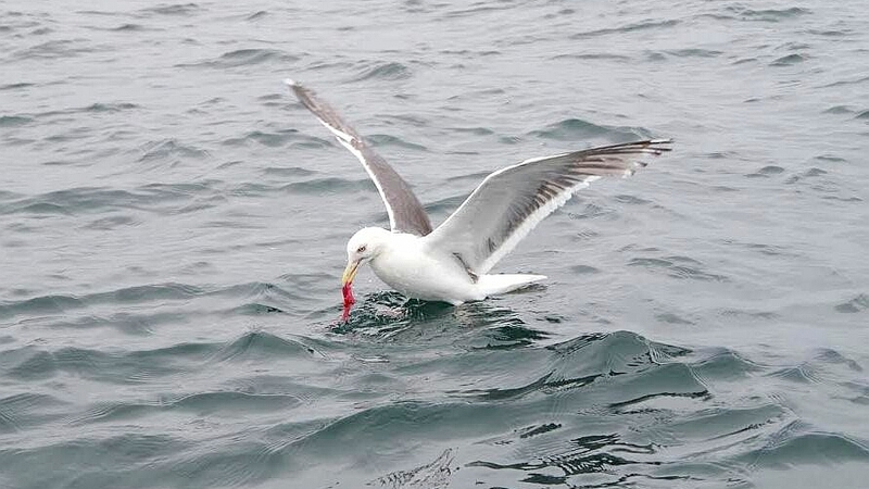 Вода в заливе еще холодновата, поэтому сюда надо заглянуть немного позже. Обычно в середине июля становится теплее, и в акваторию заносит криль, разных экзотических рыб, можно увидеть настоящих китов, попытаться половить лакедру и даже тунца.
