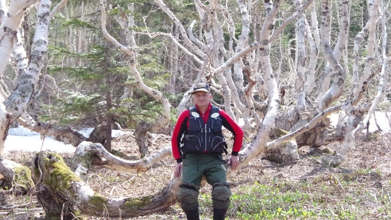 Сначала пришли на остров посреди Тунайчи. Контрольные забросы принесли по красноперке. Кунджи замечено не было. Кидали, как всегда, старательно. Обошли с обеих сторон Макаровскую косу, остров – везде тишина. Ветер крепчал, волна становилась круче, и это немного мешало рыбалке. На скорости дрейфа 4 км/час проводить блесну довольно сложно. Перешли в район базы отдыха «Альбатрос», там ловить было совсем невозможно, потому что в низине ветер был под 20 метров и брызги от барашков летели горизонтально. Снова ушли под ветер за остров. Но за время перехода немного укачало. Так что решили выйти на берег, что вообще-то крайне редкое явление. Но не пожалели! На берегу было потрясающе красиво! Березы, гнутые всеми ветрами, похожие на огромных осьминогов, папоротник, черемша и снег! Калужница, белокопытник – целая кладезь весенних витаминов. На старых, многолетних березах наросты чаги – целебного гриба. Пожалели, что не оказалось инструмента для сбора. Чай из чаги особенно полезен весной, здорово поднимает иммунитет и настроение, снимает стресс и усталость. В этом месте острова было тихо и тепло. Время летело незаметно, душа отдыхала, принимая нечаянную весеннюю благодать.