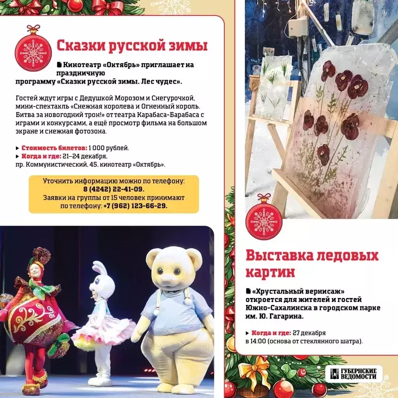 Новогодняя афиша для детей в Южно-Сахалинске: экскурсии и зимние забавы