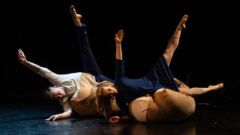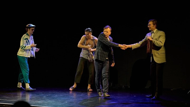 В «Поцелуй меня дважды» режиссерский минимализм раскрывается через то, как аккуратно используются те редкие объекты, что появляются на сцене. Декораций мало, но каждый элемент несколько раз переосмысляется, становясь частью пластического текста.