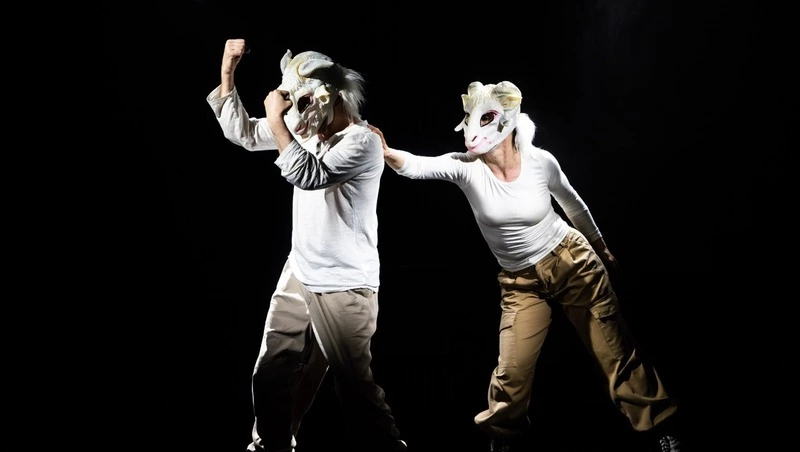 Эпизод с артистами в масках барана и овцы оказался одним из самых запоминающихся образов спектакля. Через движения партнеры «препираются» и «притираются» друг к другу — так, как метафорически это происходит в быту на ранних этапах отношений. Их танец напоминает спор, переговоры или игру, в которой оба не хотят уступать. Маски животных дистанцируют героев от их обычной человеческой роли: они перестают быть «мужчиной» и «женщиной» и становятся двумя порывами, которые сталкиваются и конфликтуют.