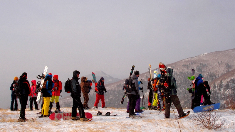 У подножия хребта сноубордисты и пешие туристы снова собрались вместе и возвратились в город на заказном автобусе.